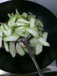 将角瓜洗净切片,猪肉切片,用料酒、生抽、淀粉等调料腌制锅中加油,放入肉片翻炒至变色,加入角瓜片和香菇片继续翻炒,加入适量的盐和鸡精,翻炒均匀即可。这道菜口感丰富,营养丰富,是一道家常美味。